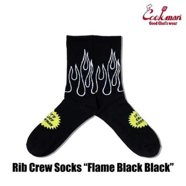 クックマン ソックス Rib Crew Socks Flame Black Black Blue リブ クルー ソックス フレイム ブラック ブラック ブルー 炎 火 ファイヤーパターン フレアー アメリカ アメリカン 靴下 COOKMAN Cookman【クロネコゆうパケット】