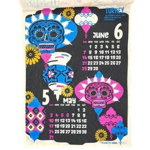 世界各国を旅行するカラベラ達が描かれたカレンダー。
