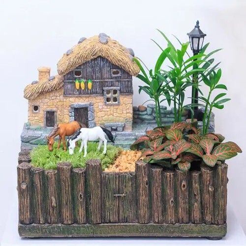 まるで絵本のワンシーンのような、小さな村の風景を再現したミニチュアフラワーポットです。