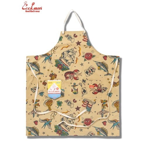 クックマン ロング エプロン Long Apron Old Tattoo Beige オールド タトゥー ベージュ アメリカ アメリカン COOKMAN Cookman ユニセックス 男女兼用【ネコポス】
