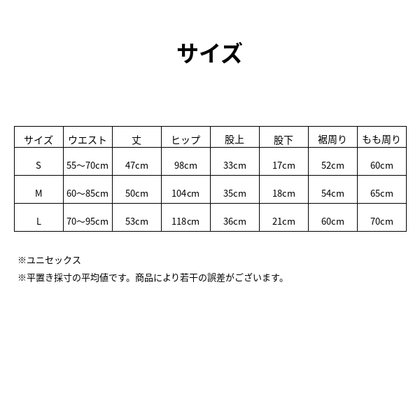 サイズ(ユニセックス)