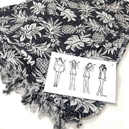 LONG SARONG PINEAPPLE BLACK 152cm×114cm ロング サロン パイナップル ブラック フラダンス アロハ ハワイ HAWAII ALOHA hilo hattie ビーチカバーアップ パレオ ドレス ショール