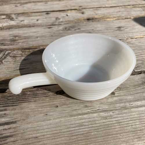 【中古】【ほぼ新品】【レア品】Fire King Milk Glass French Casserole ボーダー ファイヤーキング ミルクグラス フレンチ キャセロール お皿 アメリカ アメリカン ビンテージ ANCHOR HOCKING アンカーホッキング ワンハンドキャセロール スープ サラダ ミッドセンチュリー ストライプ